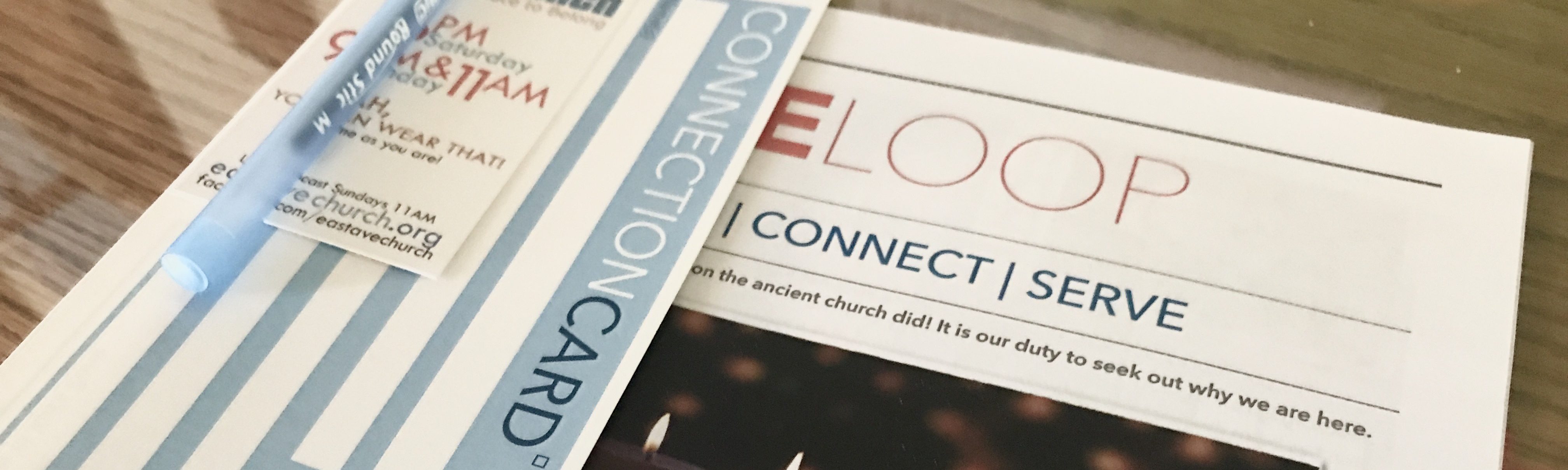 - Everyone who walks into a weekend service gets a Connection Card. It comes on our Loop (all the printed announcements for the weekend; also functions as a guest information center). Everyone gets an Invite Card. It is clipped together with a Bic Round Stic. The greeters in the lobby attempt to get to everyone with a packet. If someone sneaks by the greeters, we ask early in the service if we missed anyone and walk them around the sanctuary.