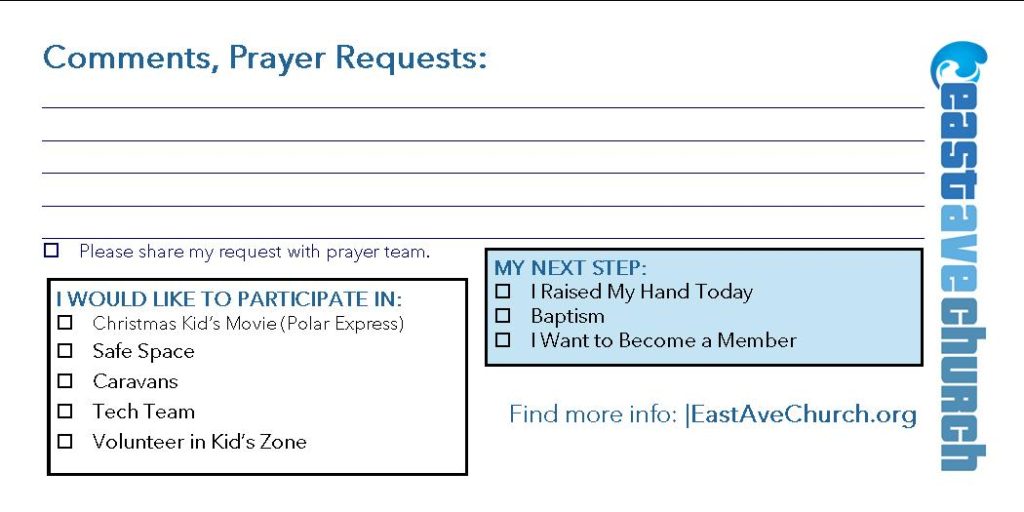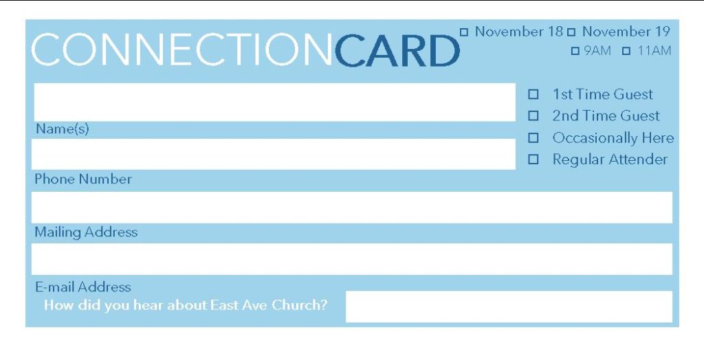 At East Ave Church, we have a Kids Zone check-in system. We use the one with our database. When new parents check in their kids, they often give us information that they wouldn’t leave on the Connection Card. When that happens, our Children’s Director writes the family with much the same idea.